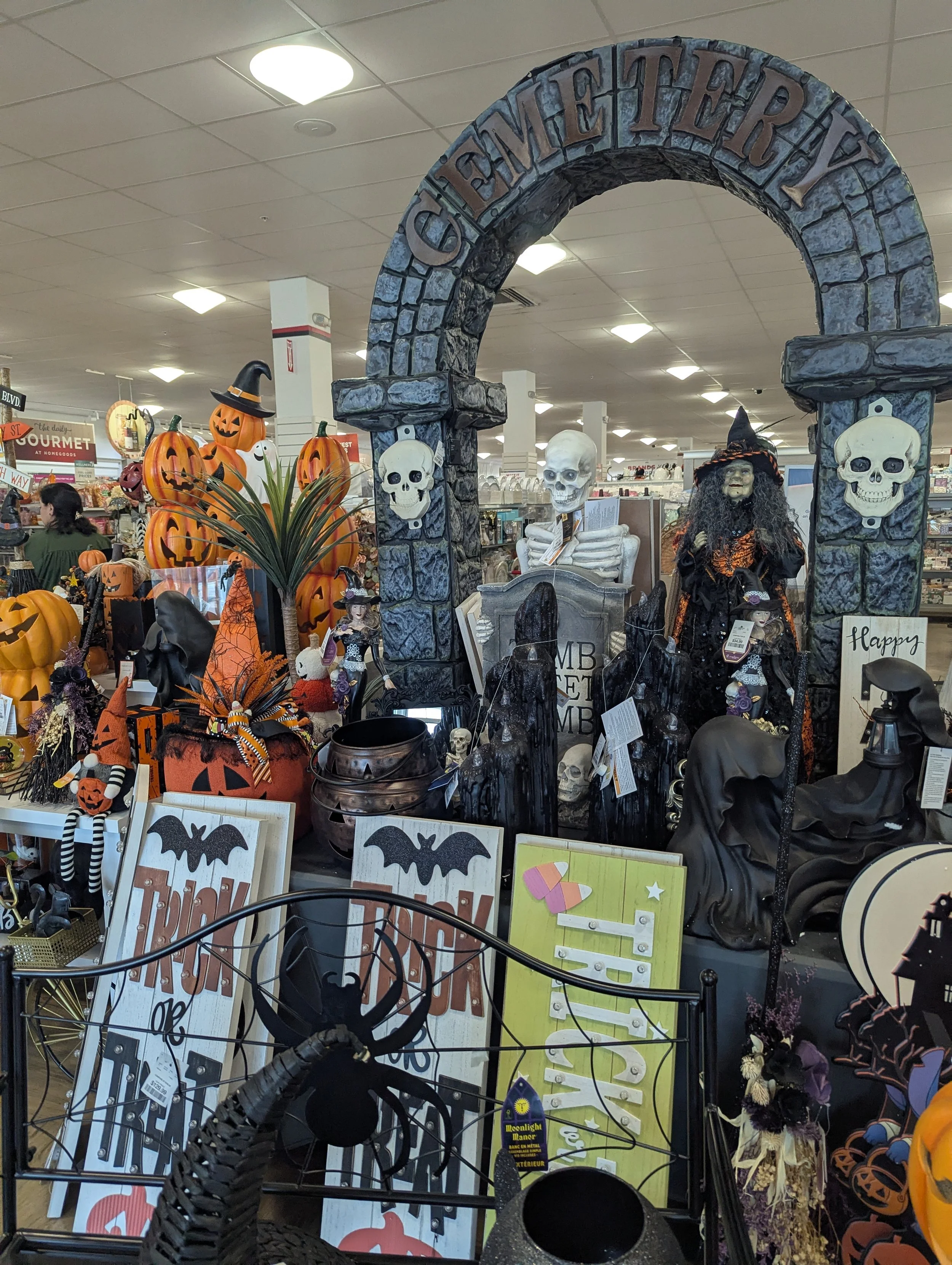 Das erste große Ereignis steht an… “Bald” ist Halloween. Naja, erst in zwei Monaten. Aber ähnlich wie mit den Lebkuchen bei uns im September, können es die Amerikaner kaum erwarten, ihre Läden mit Halloween-Deko und Leckereien zu bestücken. Man, was es hier für eine Auswahl gibt. Unglaublich… Das fängt mit Deko an und hört mich Fleecedecken, Schlafanzügen, Socken und künstlichen Fingernägeln auf. Wir waren sehr beeindruckt. Aber mich beschleicht das Gefühl, dass es gerade erst losgeht. Die beiden Kinder haben auch schon Kostüme entdeckt. Matti wollte es natürlich gleich kaufen…