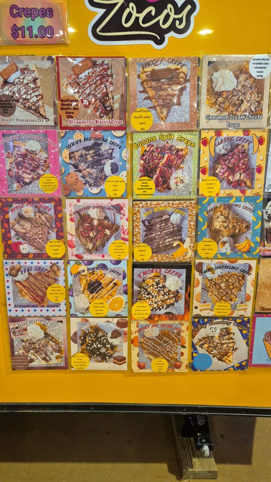 Crepe-Auswahl auf dem Jahrmarkt.